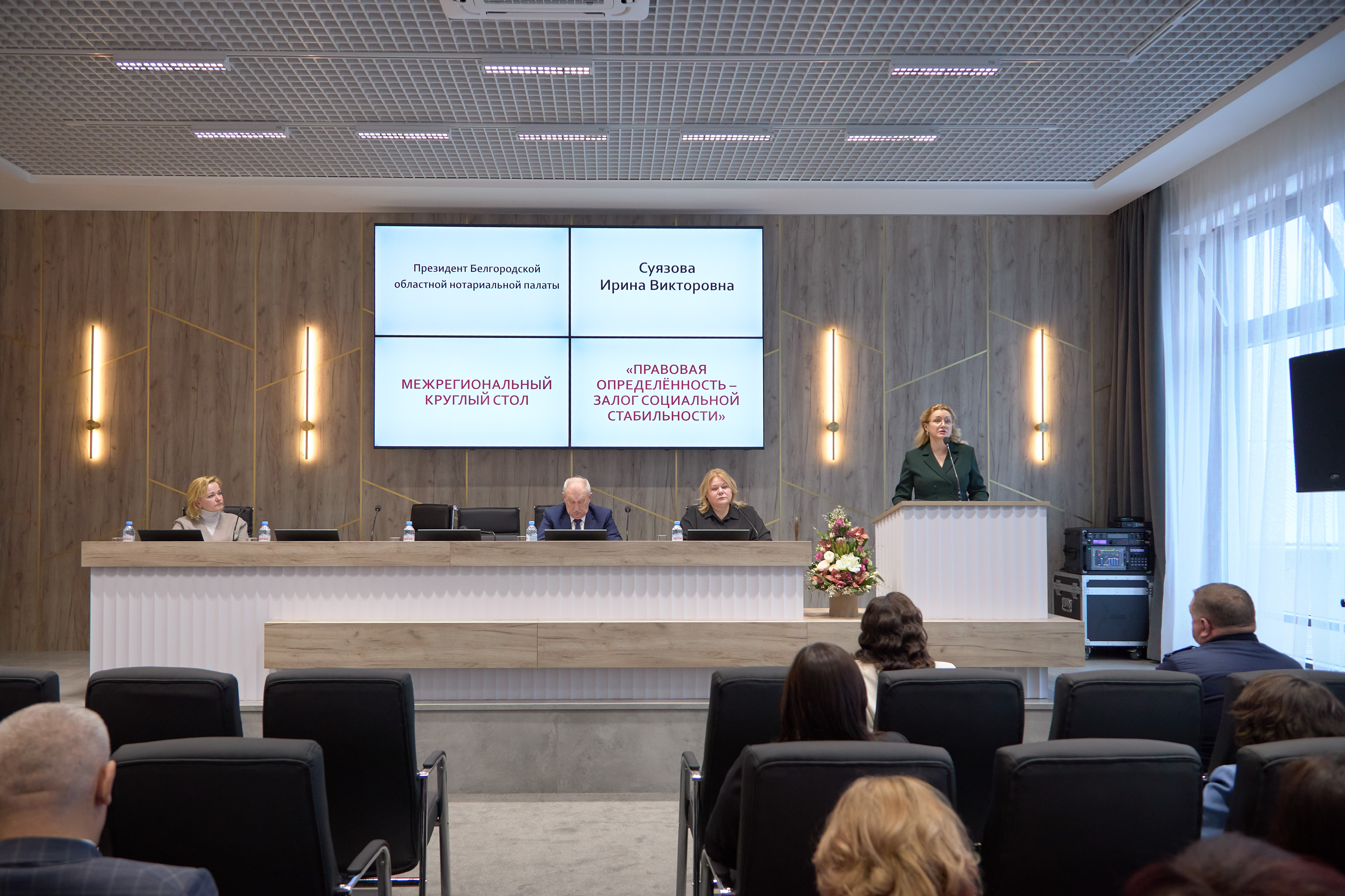 Первым официальным мероприятием в новом здании стал Межрегиональный круглый стол на тему «От правовой определенности к социальной стабильности», в котором приняли участие сами хозяева и специалисты из соседних регионов – Белгородской, Воронежской, Брянской, Самарской областей.