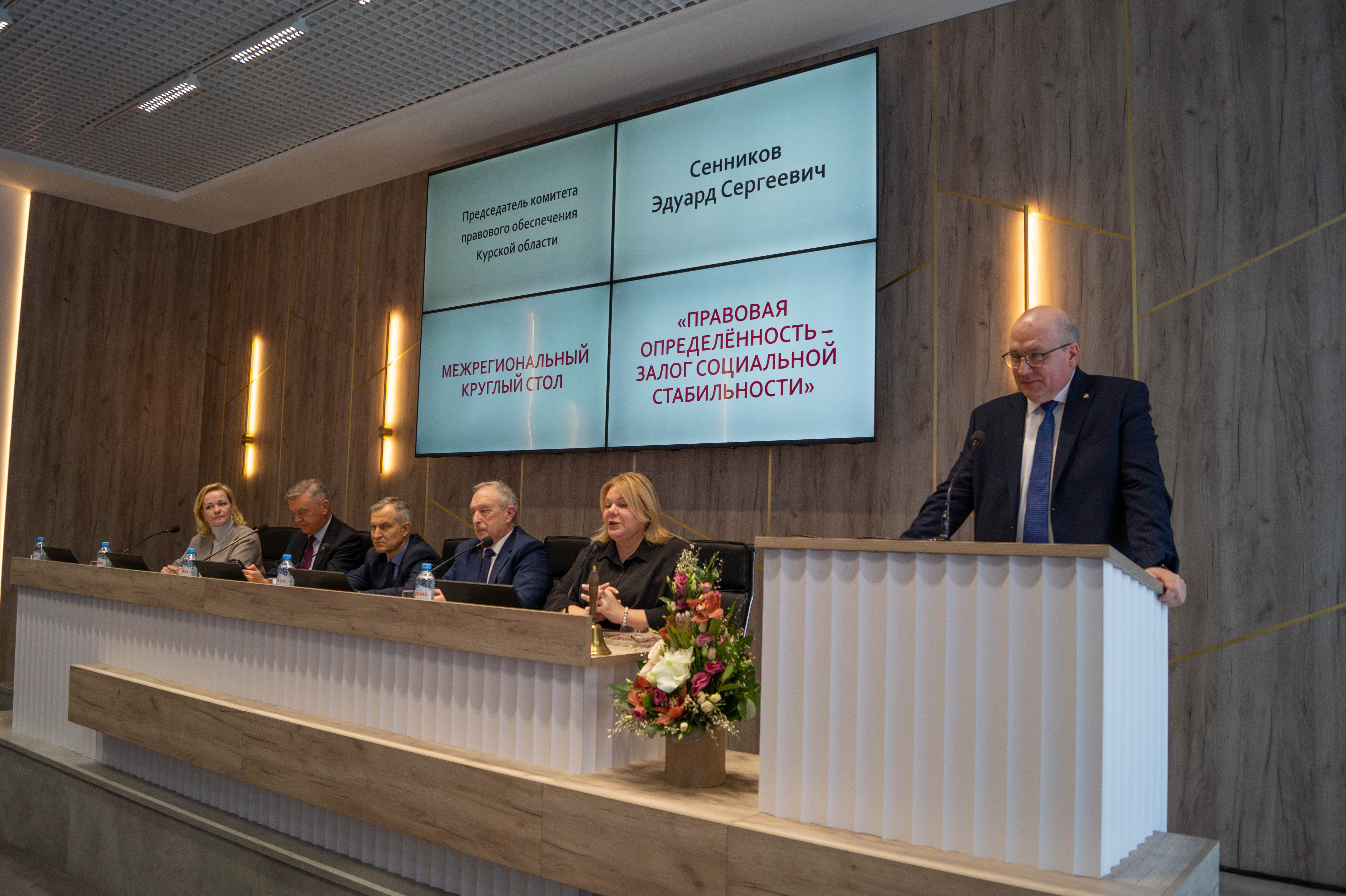 28 января в Курске прошел межрегиональный круглый стол на тему «Правовая определенность — залог социальной стабильности». На мероприятии с участием представителей региональной власти, общественных организаций и нотариата обсуждались вопросы развития и повышения доступности бесплатной юридической помощи, межведомственного взаимодействия и правовых механизмов социальной поддержки граждан.