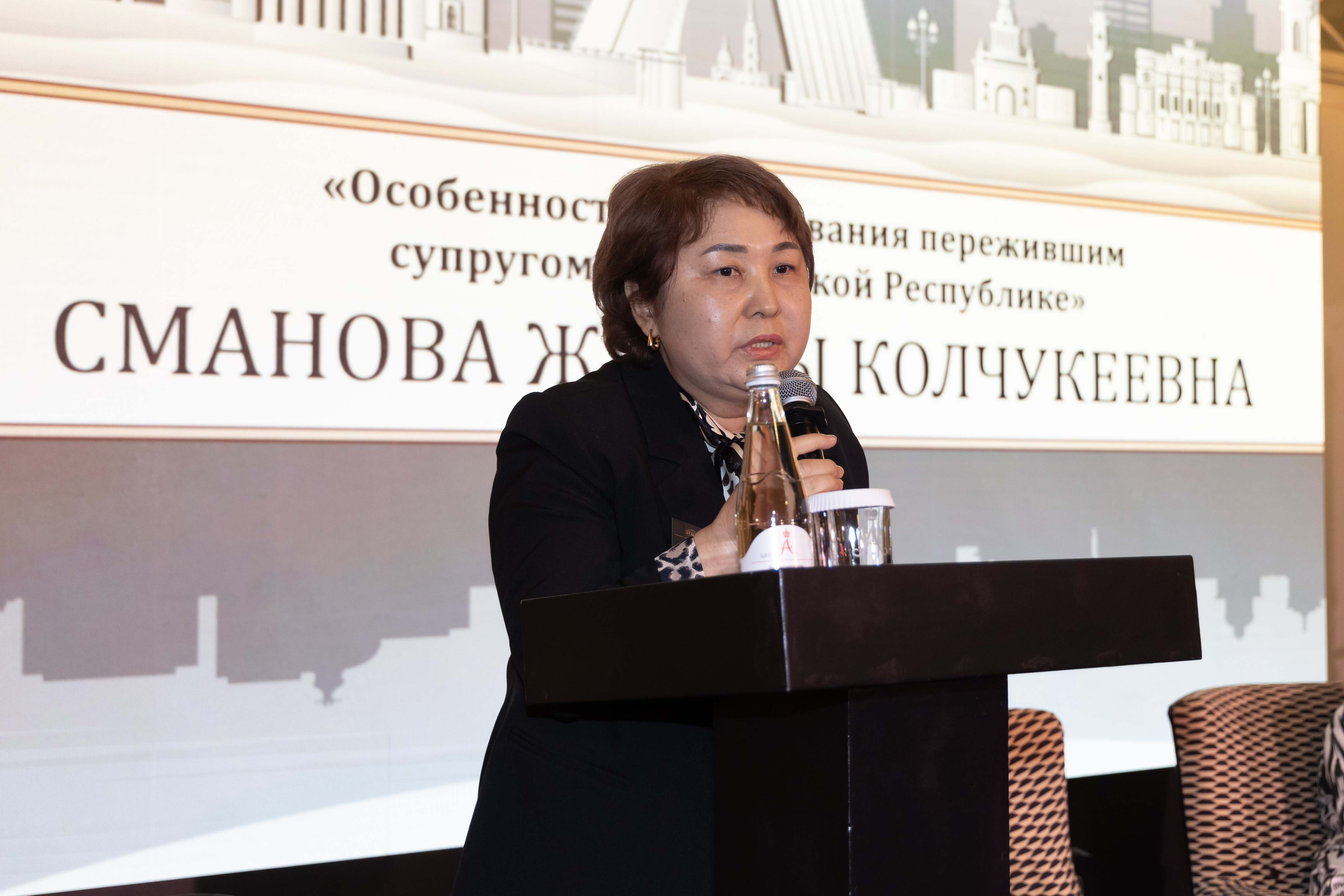 О нормах наследственного права, действующих в Киргизии и имеющих ключевое значение для трансграничного наследования, рассказала частный нотариус г. Бишкека Жылды Сманова. Так, пережившего супруга по законодательству республики могут отстранить от наследования. Для этого через суд необходимо доказать, что брак фактически прекратился и супруги проживали раздельно не менее пяти лет до смерти наследодателя. Кроме того, в Киргизии обязательная доля в наследстве для детей, нетрудоспособного супруга и родителей наследодателя составляет 2/3 от того имущества, которое они получили бы при наследовании по закону.